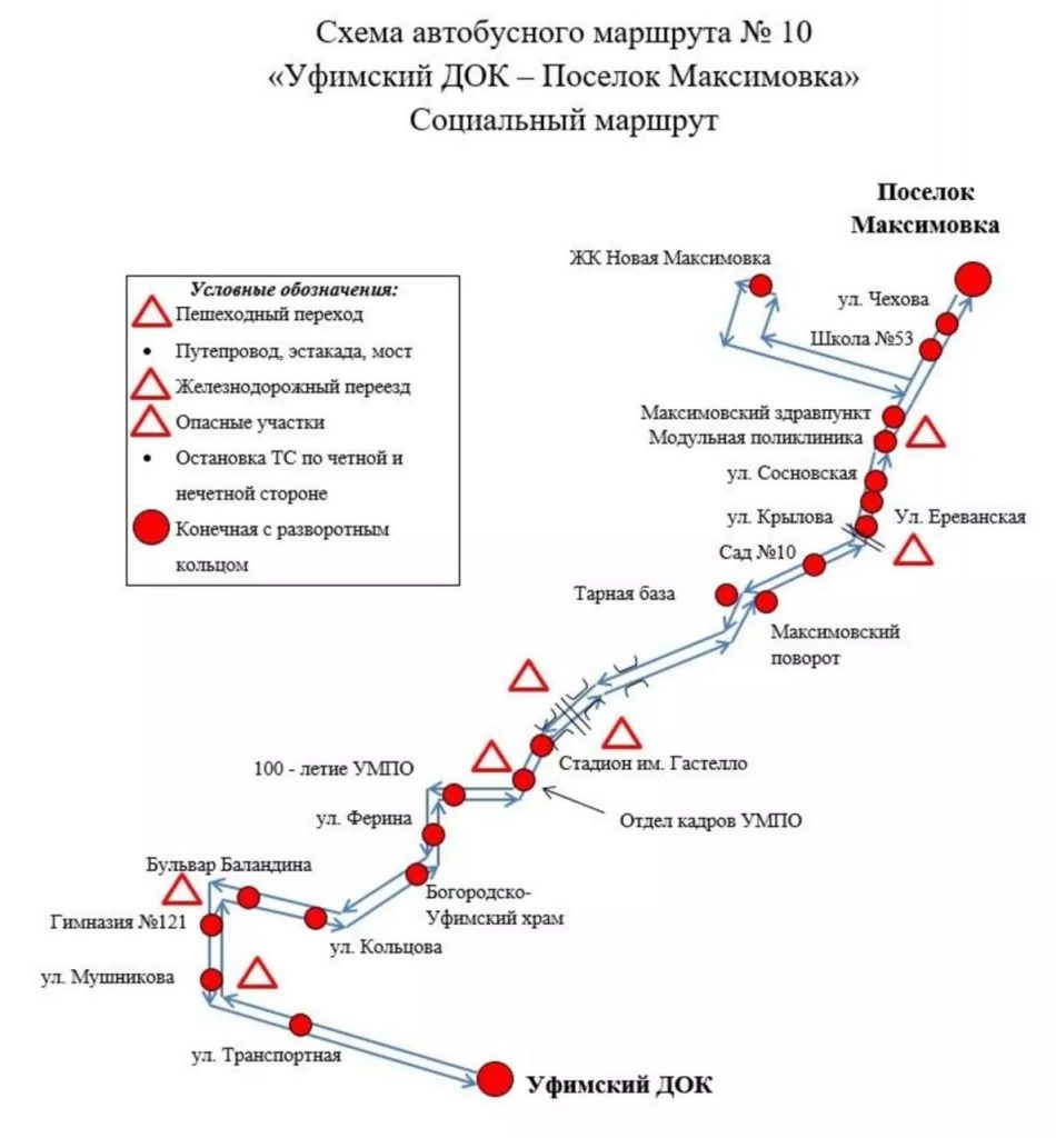 При движении в сторону «Уфимского ДОКа» транспорт будет заезжать в «Новую Максимовку», обеспечивая дополнительное обслуживание этого района.